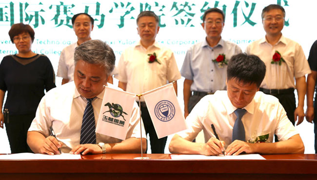 太原理工大學玉龍國際賽馬學院是太原理工大學與山西玉龍馬業發展有限公司,本著優勢互補、強強聯合的原則共建的培養賽馬業和馬術界高端管理人才辦學機構。20188月,雙方簽訂了共建“玉龍國際賽馬學院”合作協議,為中國馬業和教育領域,雙雙填補了國內空白。20189月雙方在玉龍馬業舉辦了掛牌儀式。
